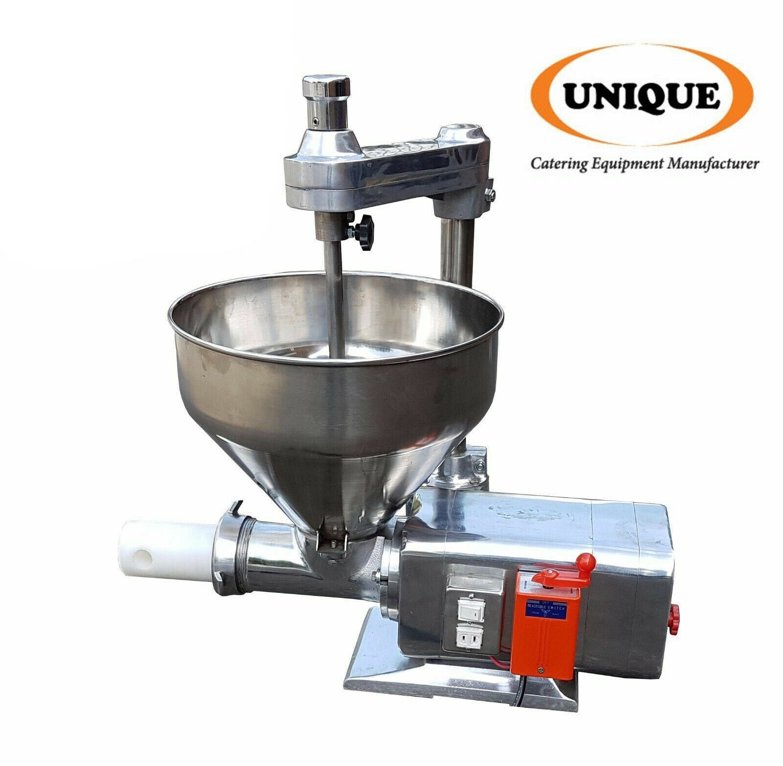The new Seekh Kebab machine Extruder features the traditional proven values of durability, reliability and quality, joining them with the latest in extrude forming technology, for a machine with superior performance in all aspects of the meat extruding process. This advancement in Unique Caterings technology allows for a smoother, gentler, handling of every type of meat product, and exceptional control. It has proven to be the leading machine within the ethnic food industry. Its adaptability to accept numerous attachments which enable the production of not just Sheesh Kebabs but the extruder has been developed to accommodate the needs of low and high volume producers of, frozen foods, snack foods and ready meal products such as, Burgers, Sausages, Minced Meats, Extruded profile shapes in measured lengths & Meat Balls. The machines guarantees accurate forming of a wide variety of mixtures from Minced Lamb, Chicken, and Veg & Fish. This machine has been exported throughout the world with great success. It is being used by leading food manufacturers producing for a variety of major Hypermarket business for volume branded products, restaurants and fast food outlets.